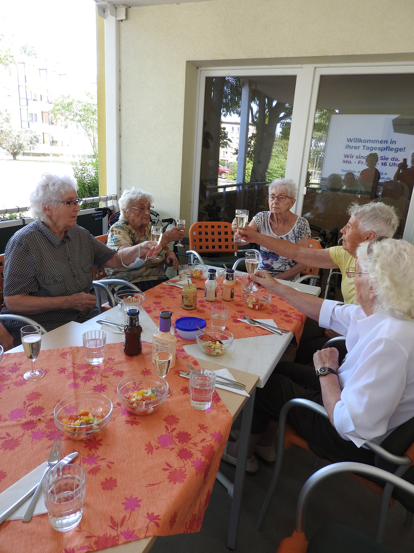 Vor einiger Zeit haben wir eine kleine „Grillparty“ mit unserer Gruppe der Tagespflege veranstaltet, um die letzten warmen Tage noch einmal zu genießen, bevor der Herbst Einzug hält. In bester Gesellschaft haben wir gemeinsam viel gelacht und uns gut unterhalten. Zur Feier des Tages gab es dann noch eine Runde Sekt, alles in allem also ein erfolgreicher Tag.